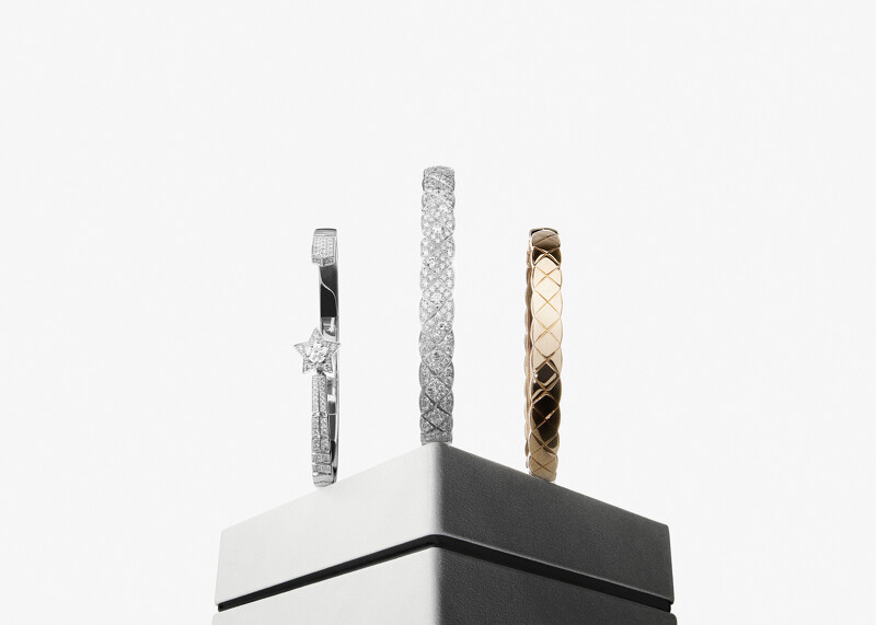 香奈儿自2015年推出COCO CRUSH高级珠宝系列,以“Matelassé”菱格纹图腾为灵感,运用精緻的金雕创作出一系列运用菱格纹图腾交织的戒指及手环。而后,更注入了香奈儿女士最锺爱的宝石-钻石,及品牌独创18K BEIGE米色金,陆续推出以不同K金或搭配钻石镶嵌的各式宽、窄版戒指、手环及耳环与耳扣,为COCO CRUSH高级珠宝系列注入丰富样貌。